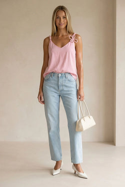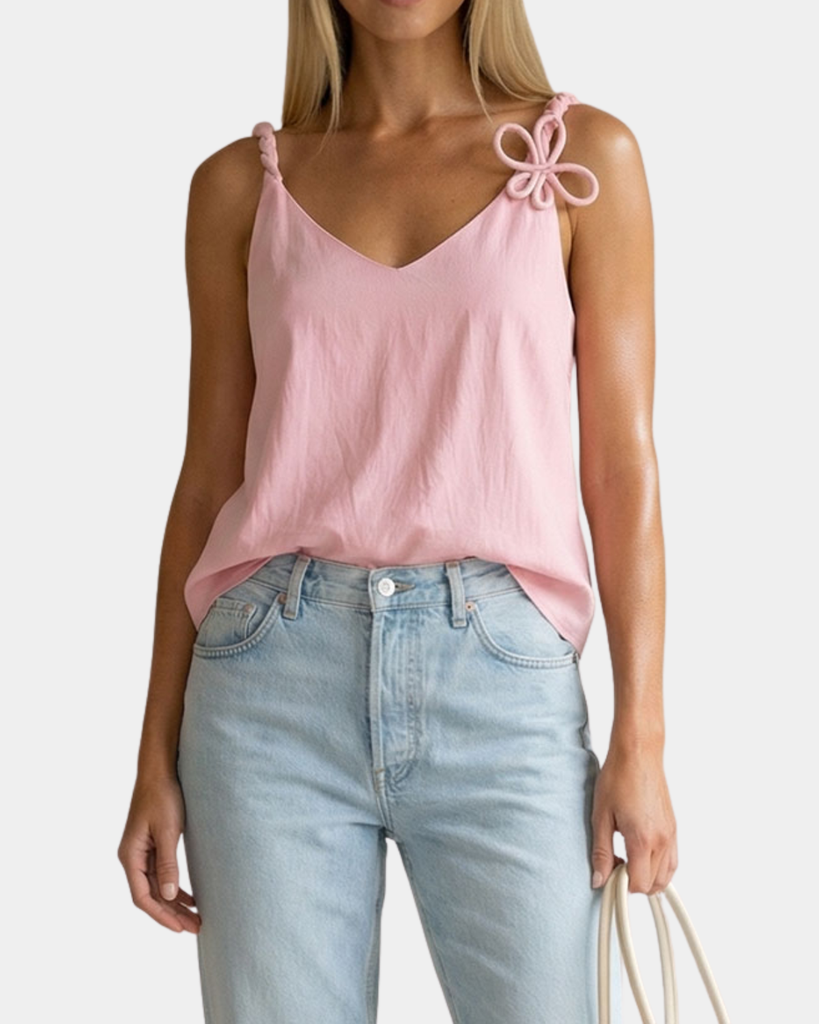 Add a touch of whimsy to your everyday rotation with this delightful tank top. The standout twisted flower detail brings dimension and personality, while the soft, breathable woven fabric keeps comfort front and center.