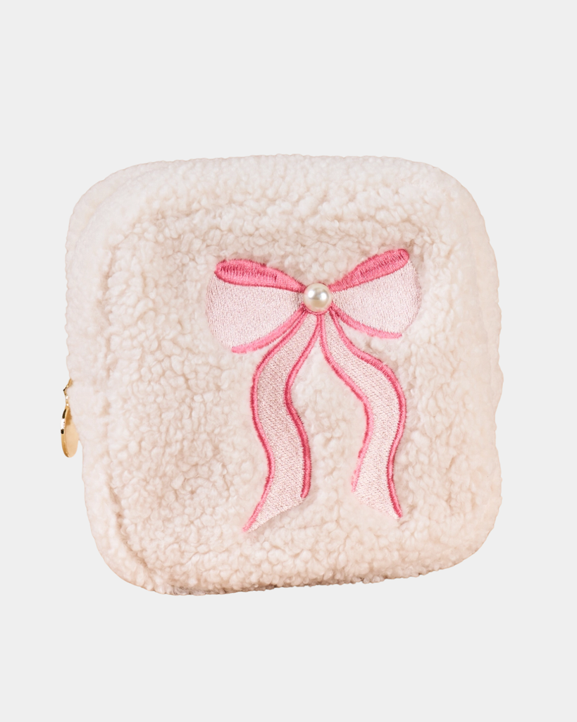 Soft sherpa meets practical charm in this Teddy Pouch. The wipeable lining keeps messes at bay, while a gold zipper adds a dash of elegance. Perfect for organizing small treasures and mixing with our other pouch shapes.