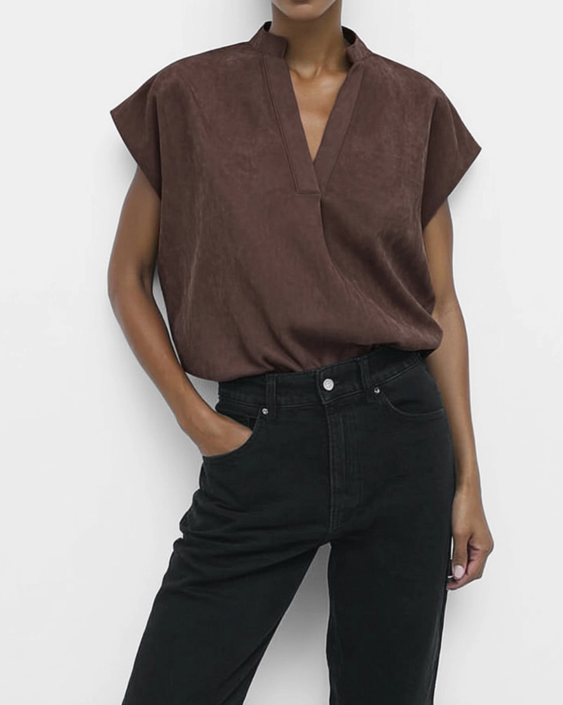 This Soft Matte Blouse brings a cozy, laid-back vibe with its drop shoulder design, perfect for pairing with your favorite tailored trousers or easy denim. Slip it on and let effortless style do all the talking!