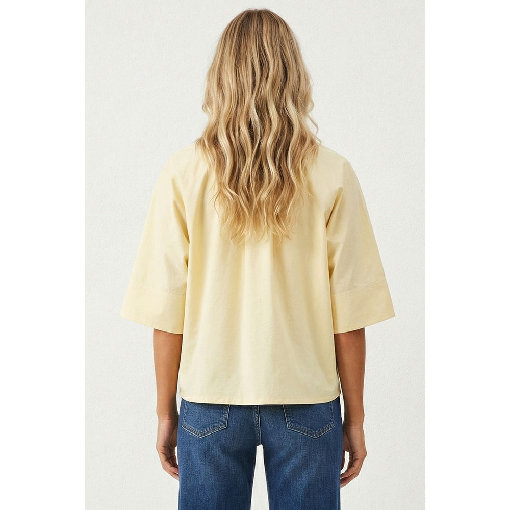 Lightweight woven fabric crafted for breathable comfort throughout the day. This boxy half-sleeve button-up features a relaxed, modern silhouette that transitions seamlessly from casual to polished. Pair with high-waisted trousers for refined elegance or style with denim for laid-back everyday wear.