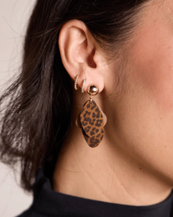 The Weston Earrings redefine leather accessories with Suede Nappa leather paired with elegant gold studs. These unique, lightweight earrings blend fluid movement and modern sophistication in a striking statement piece.