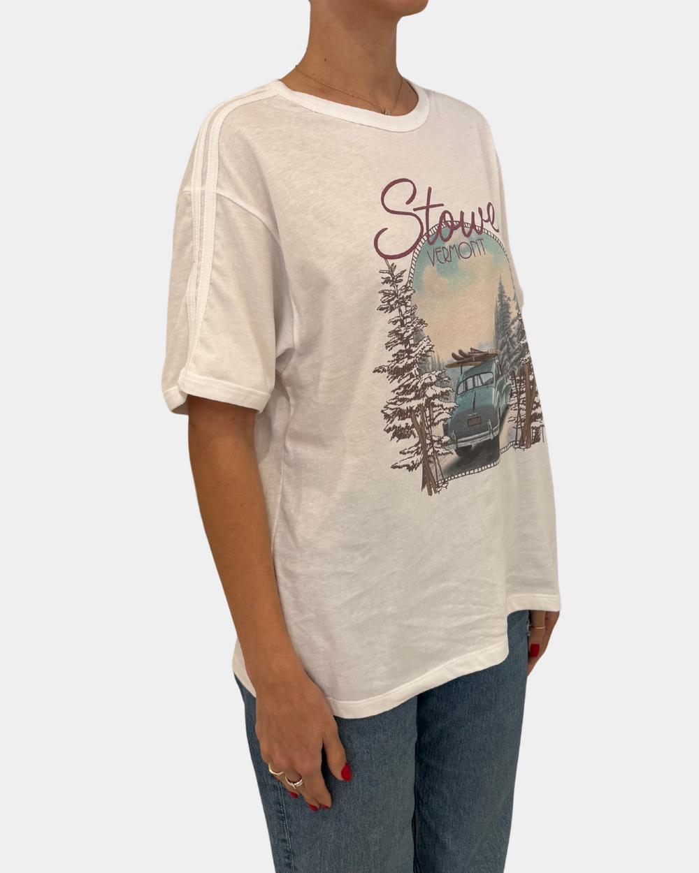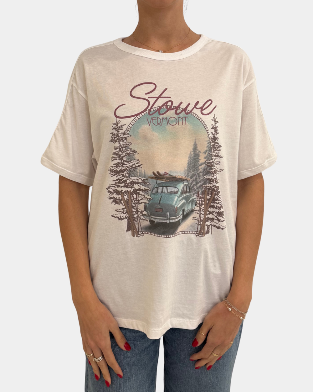Rock this white Stowe Vermont graphic tee and wear your wanderlust on your sleeve. Made from breathable cotton with a fun regional graphic, it's the ultimate laid-back essential.