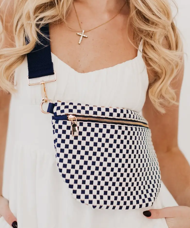 Meet the woven Westlyn bum bag! This design is such a classy take on a crossbody. The bag has a zipper closure and a zippered stash pocket on the inside. This crossbody bag is the perfect way to elevate your look!