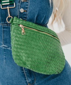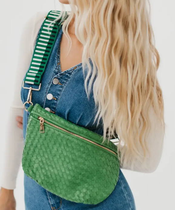 Meet the woven Westlyn bum bag! This design is such a classy take on a crossbody. Including the fun block design the strap has, the bag also has a zipper closure with beige and black chevron interior, and a zippered stash pocket on the inside. This crossbody bag is the perfect way to elevate your fall/winter look!