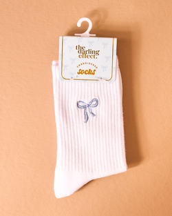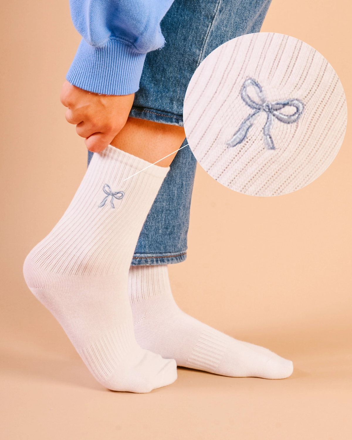 These embroidered crew socks feature an adorable blue bow design that instantly jazzes up sneakers, boots, or slides. Crafted from soft, breathable fabric with just the right amount of stretch, they keep your feet happy from morning to night.