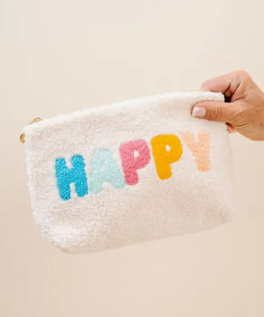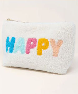 Keep your items safe, secure and stylish in these new Sherpa teddy pouches. Featuring gold zipper hardware, and a retro floral interior lining! Whether it's for your daily essentials or your carry-on accessory, this pouch can carry whatever you need.