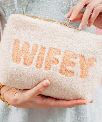 Keep your items safe, secure and stylish in these new Sherpa teddy pouches. Featuring gold zipper hardware, and a retro floral interior lining! Whether it's for your daily essentials or your carry-on accessory, this pouch can carry whatever you need.