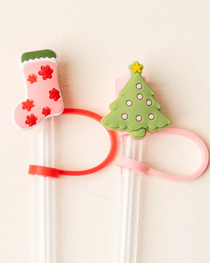 Add a fun flair to your drinks with the holiday straw toppers that keep straws clean, festive, and adorable! Each set comes with 2 bendy silicone toppers made to prevent leaks. Don’t forget to hand wash them to keep the fun going!