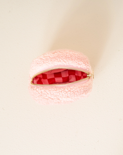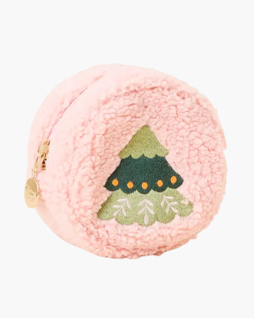 Infuse your daily essentials with holiday charm through our Christmas Circle Teddy Pouch. Crafted from plush sherpa fabric and accented with elegant seasonal details, it offers a practical wipeable interior lining and refined gold hardware for a polished finish.