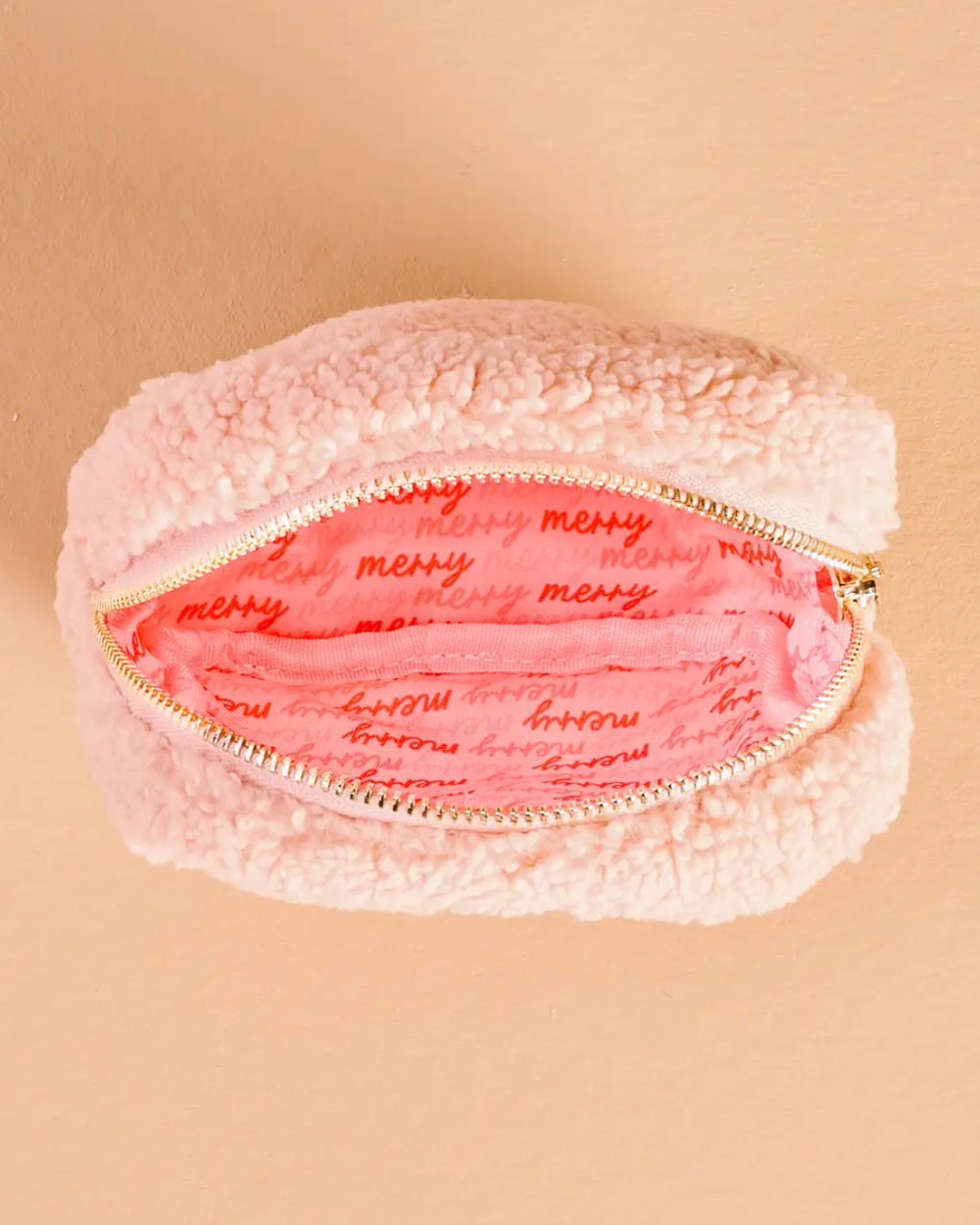 Keep your holiday vibes bright and your essentials tidy with our cozy Teddy Pouch, crafted from soft sherpa and accented with shiny gold zippers. With a wipe-clean lining and fun matching shapes, it’s the perfect way to mix, match, and sprinkle festive joy wherever you go!