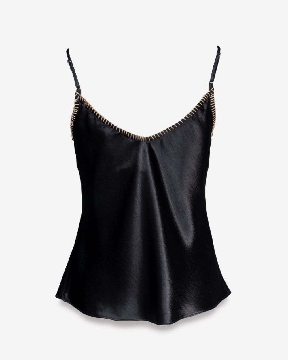 Elevate your essentials with this refined satin camisole, crafted from luxurious glossy fabric that drapes beautifully against the skin. Delicate whipstitch detailing provides understated visual interest, while the minimalist cut and adjustable straps ensure a flattering, versatile fit for any occasion.