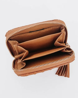 Get ready to weave your way into style with the Wynona Woven Wallet in Solid Brown Check. Made with high-quality materials, this wallet combines functionality with a touch of playfulness. Keep your essentials organized while adding a unique touch to your everyday style.