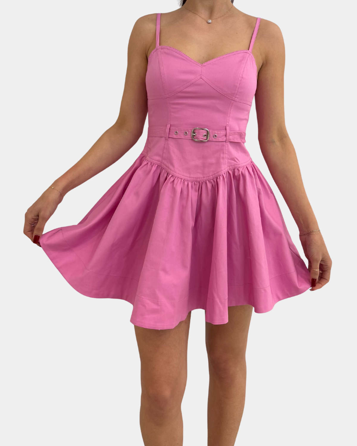 Twirl into spring with this charming mini flare dress! The Steve Madden Kristy features a flattering belted waist that cinches your silhouette, while the playful flared skirt adds movement and fun to every step. Perfect for date nights, brunch dates, or whenever you want to feel effortlessly chic.