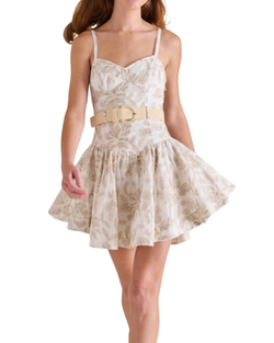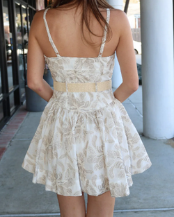 The Kirsty Dress combines timeless elegance with modern flair. This fit and flare mini dress features delicate embroidery that adds texture and visual interest throughout. The silhouette hugs at the bodice before flowing gracefully from the waist, creating a flattering and feminine shape. Paired with a wide raffia belt, this dress offers versatile styling—wear the belt cinched for definition or remove it for a relaxed look. Perfect for brunch, casual outings, or dressed up for evening events.