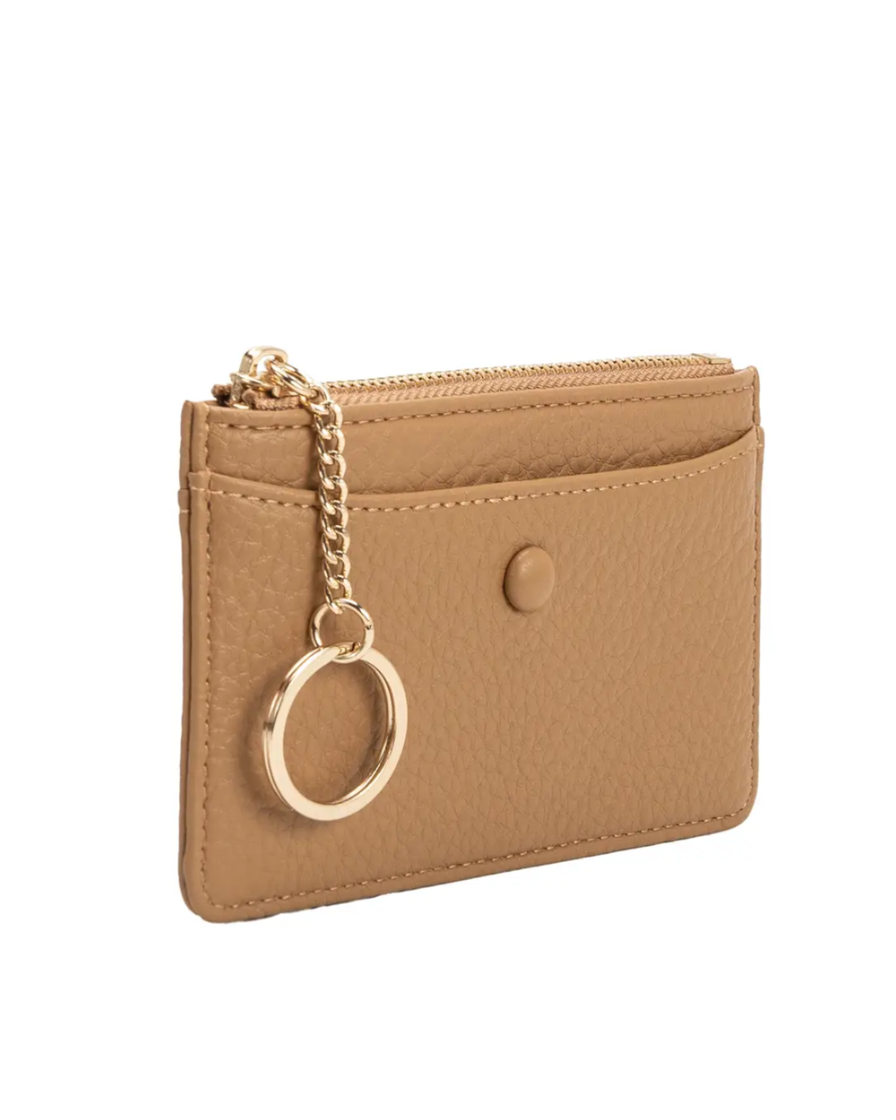 The Lupe Vegan Leather Card Case Wallet is your new go-to for keeping cards and keys together. With its textured finish, five card slots, and attached key ring, it's the perfect pocket-sized companion for staying organized in style.