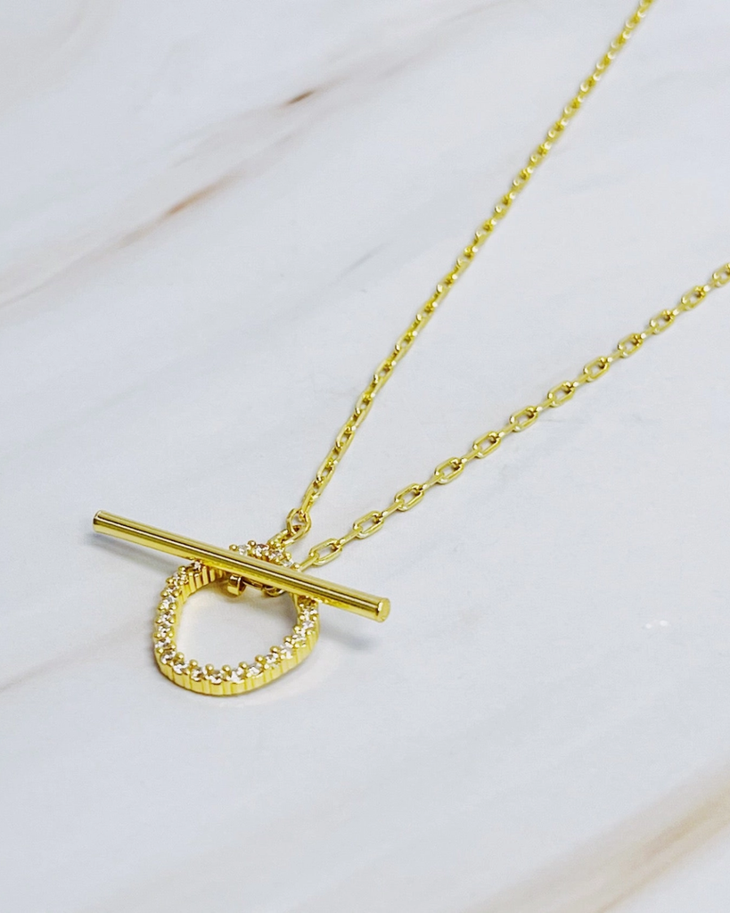 The Amelia Dainty Toggle Necklace showcases an elegant and contemporary toggle detail, adding a refined touch to any jewelry ensemble. Its clean and chic design makes it an ideal accessory for both everyday wear and special events.