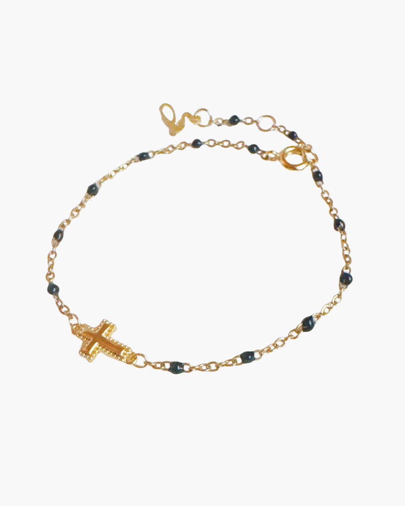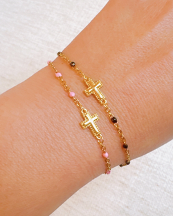 Give your wrist a little pop of modern fun with this bracelet. Its pretty coloring and trendy cross bring a sweet charm, while the delicate chain adds a light and playful vibe.