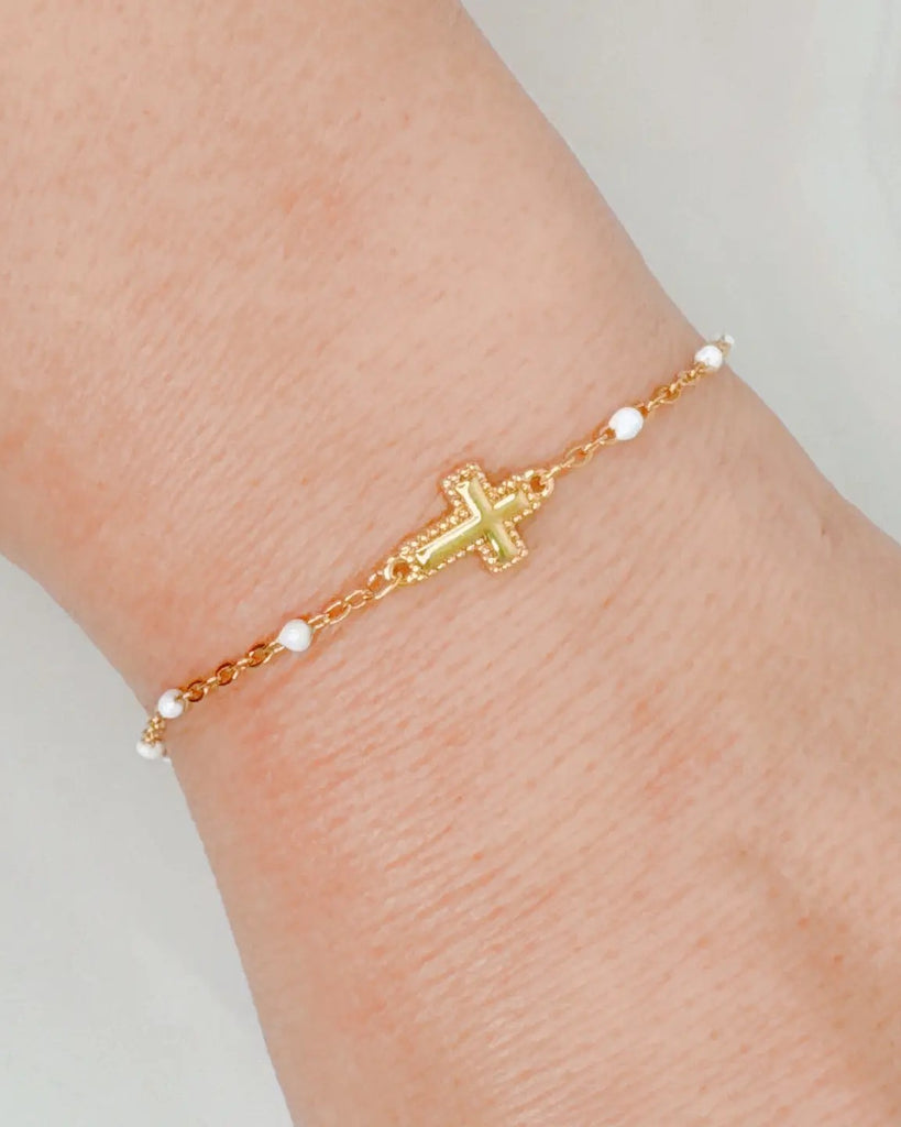 This Dainty Color Dots Chain Heart Bracelet features a lovely coloring and modern, chic dot chain design. The stylish cross adornment adds a touch of elegance to any outfit.