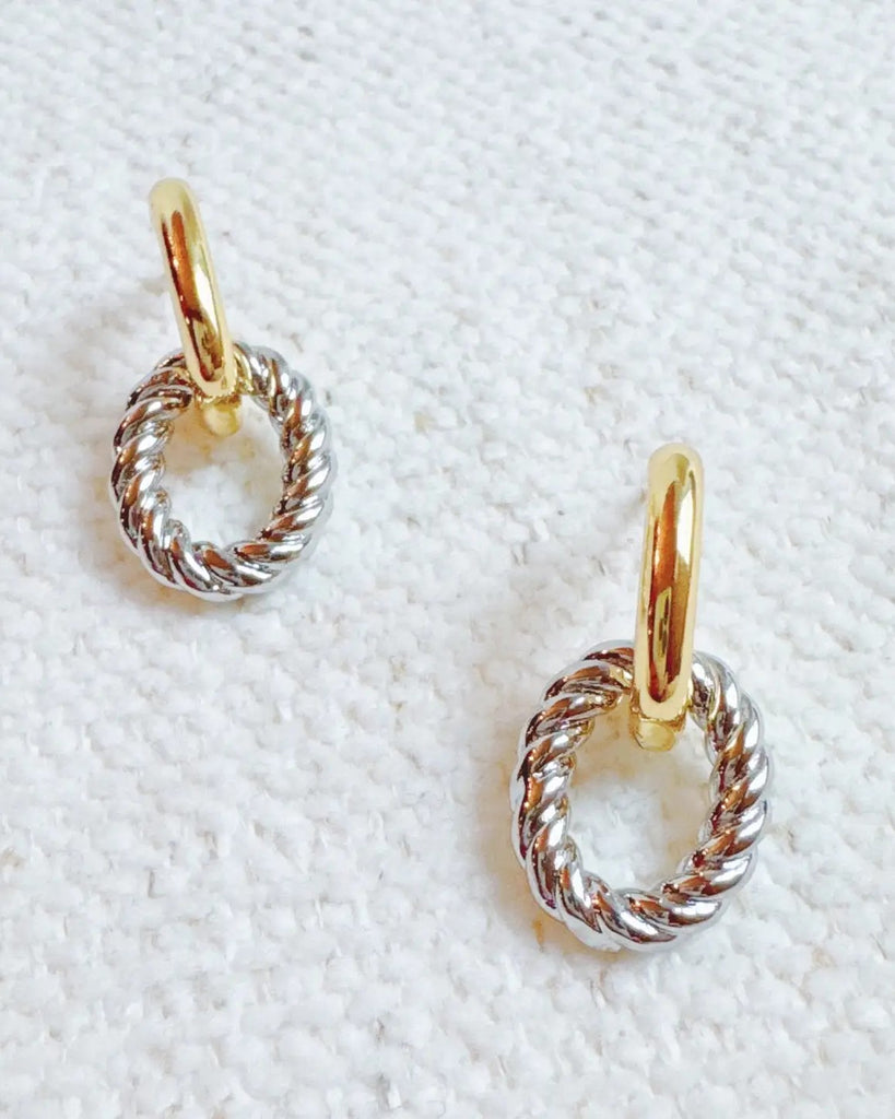 Make a bold statement with the Two-Toned Knocker Earrings. These striking earrings feature a sleek combination of gold and silver tones, creating a contemporary and chic design. Perfect for adding a touch of sophistication to both casual and formal looks, these earrings are a versatile addition to your accessory collection.