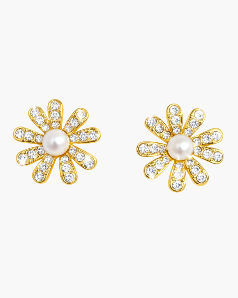 Add a spark of joy to your everyday style with these charming flower studs. Each earring features a creamy pearl bloom nestled within delicate gold petals that catch the light beautifully.