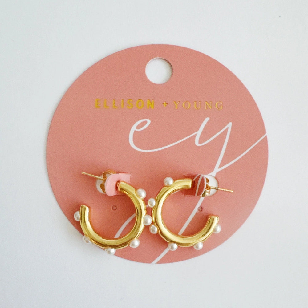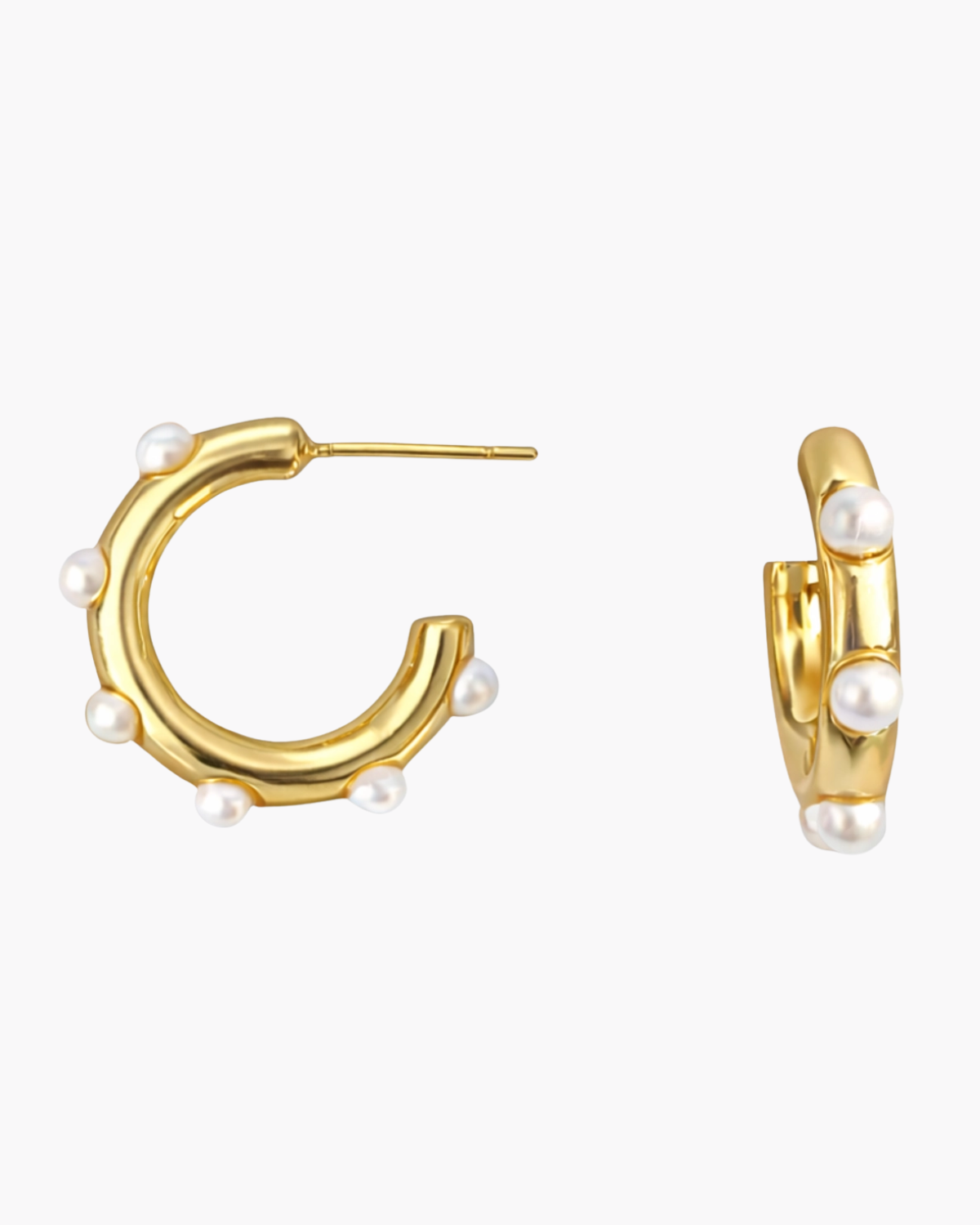 Elegant Pearl Hoop Earrings combine lustrous pearls with polished gold for timeless sophistication. The delicate pearl accents add dimension and refinement to smooth, radiant hoops—perfect for elevating any look, from everyday wear to special occasions.