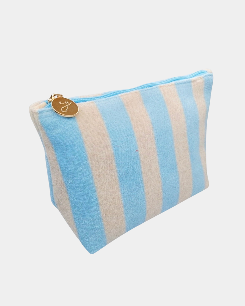 Cute striped pouch that keeps your cosmetics and essentials organized on the go or at home. Travel-ready and totally stylish!
