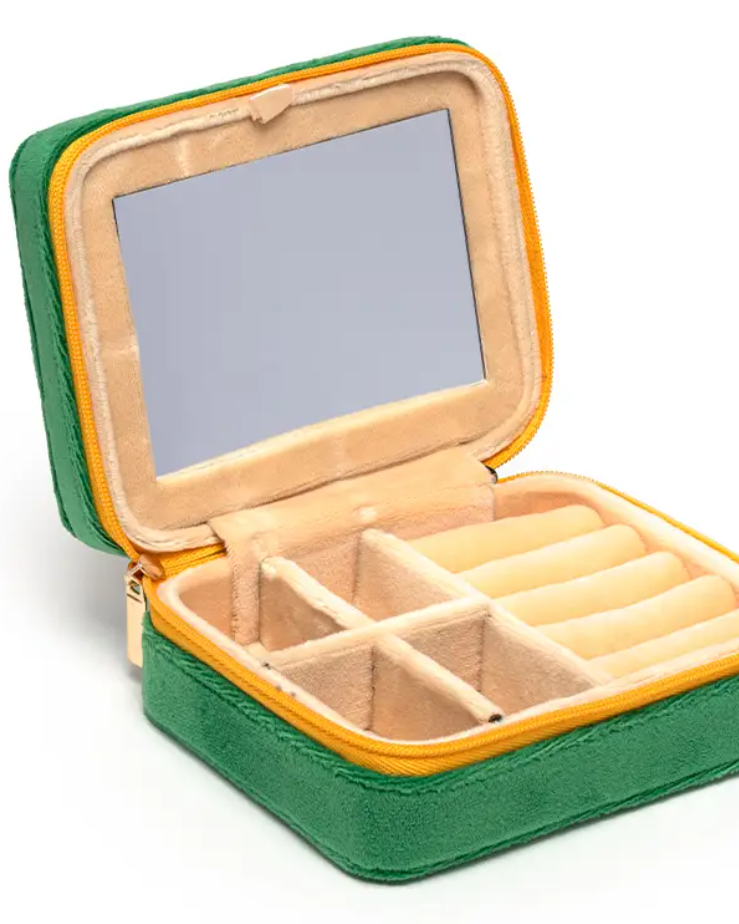 Ensure your jewelry stays protected and stylish on the go with this chic jewelry case. This ultimate travel companion is perfectly designed for organizing all types of jewelry, including rings, earrings, necklaces, and bracelets, using multiple hidden slots and compartments to keep your valuables secure. Crafted from luxurious, super soft velvet, each case also includes a built-in mirror for added convenience.