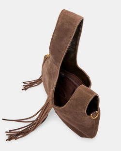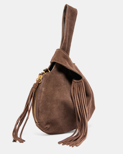 Silky suede and warm neutrals with a touch of fun fringe. ZURY’s casual wristlet design and cool details are a match for effortlessly chic layers and your favorite pair of boots. Throw the essentials in and carry her all day or night.
